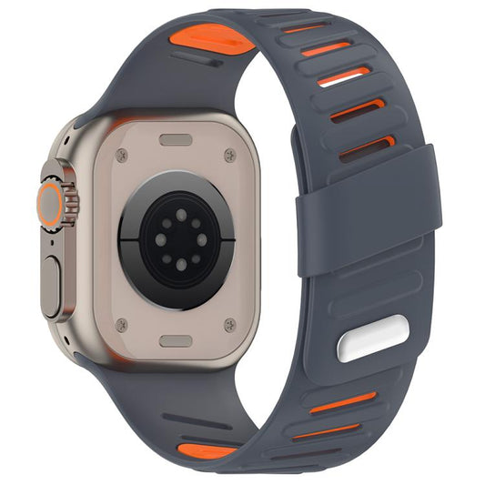 For Apple Watch 46mm / 49mm / 45mm / 44mm Oblique Buckle Breathable Two-Color Silicone Watch Band(Gray Orange)