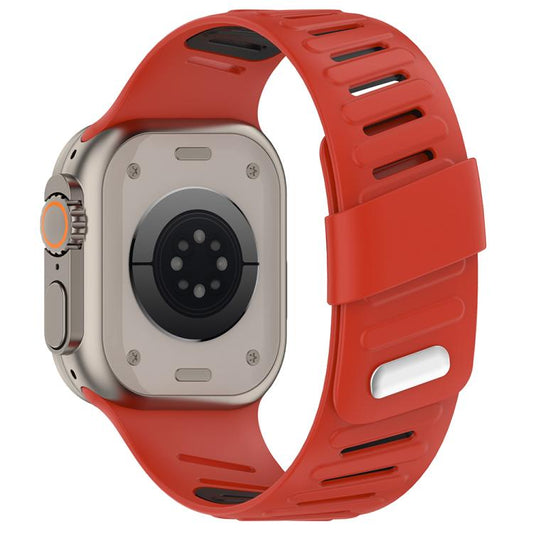 For Apple Watch 46mm / 49mm / 45mm / 44mm Oblique Buckle Breathable Two-Color Silicone Watch Band(Red Black)