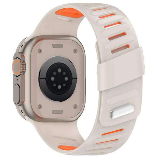 For Apple Watch 46mm / 49mm / 45mm / 44mm Oblique Buckle Breathable Two-Color Silicone Watch Band(Starlight Orange)