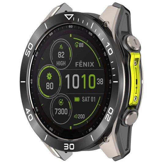 For Garmin Tactix 8 AMOLED 47mm Time Zone Style Stainless Steel Metal Watch Protective Ring(Black White)