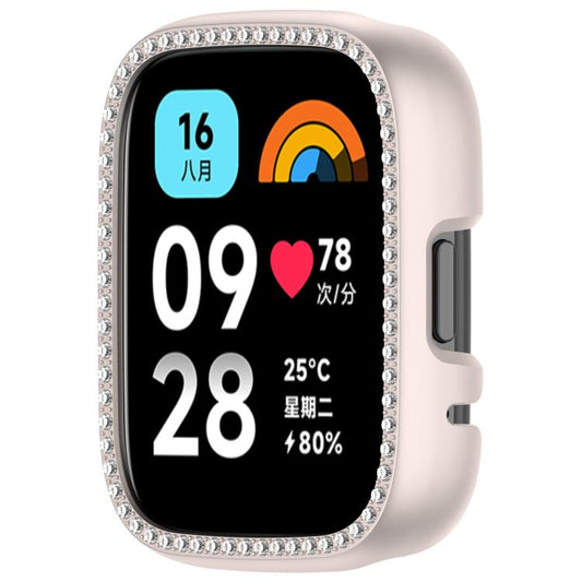 For Redmi Watch 3 / Watch 3 Lite Single Row Diamond Half Coverage Hollow PC Watch Protective Case(Frosted Starlight)