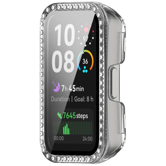 For Huawei Band 10 / 9 / 8 Single Row Diamond Tempered Film Integrated PC Watch Case(Transparency)