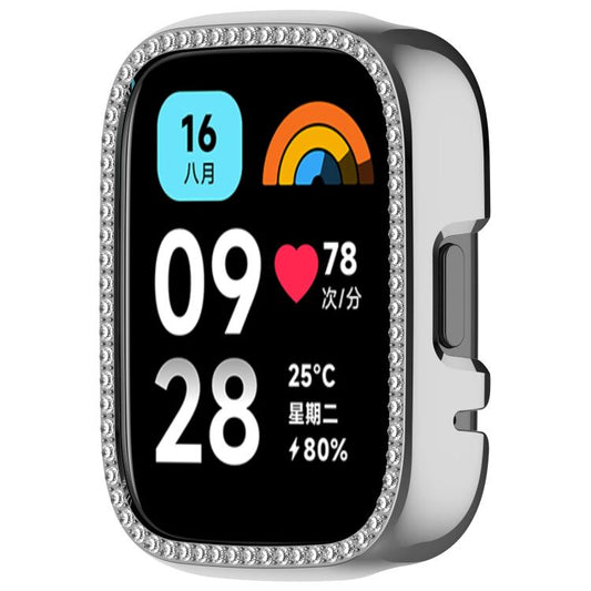 For Redmi Watch 3 / Watch 3 Lite Single Row Diamond Half Coverage Hollow PC Watch Protective Case(Silver)
