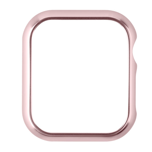 For Apple Watch Series SE 2025&SE2&6&SE&5&4 44mm Metal Frame + Tempered Glass Protector Case(Pink Green)