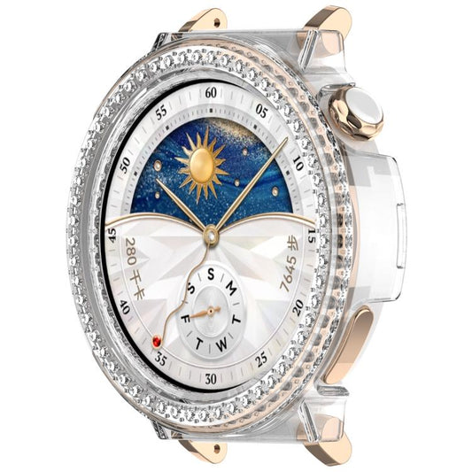For Huawei Watch GT5 Pro 42mm Single Row Diamond Half Coverage PC Hollow Watch Protective Case(Transparent Color)