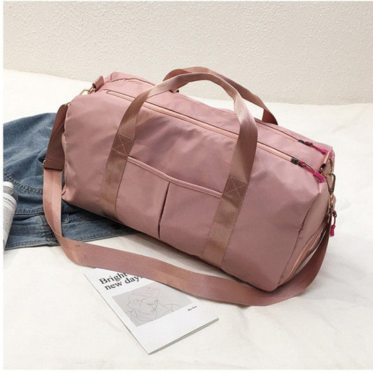 حقيبة يد لليوجا واللياقة البدنية من قماش النايلون الناعم (وردي)