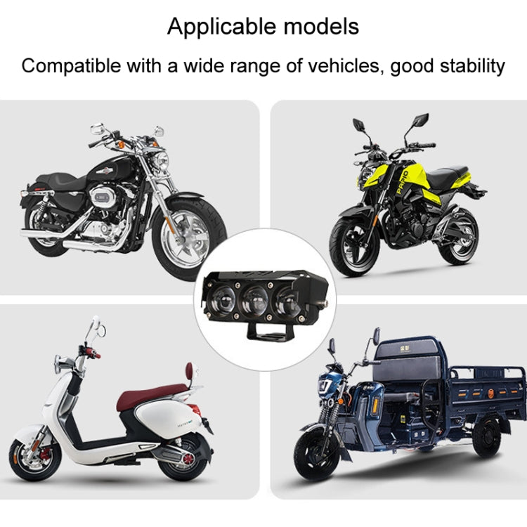 35W Motorcycle Spotlight Dual Color LED Headlight Triple Eye Waterproof Headlight, Model: Flashing-(2 Wires)
