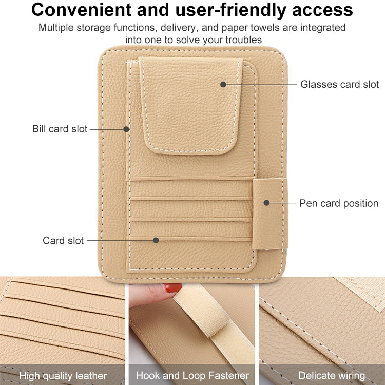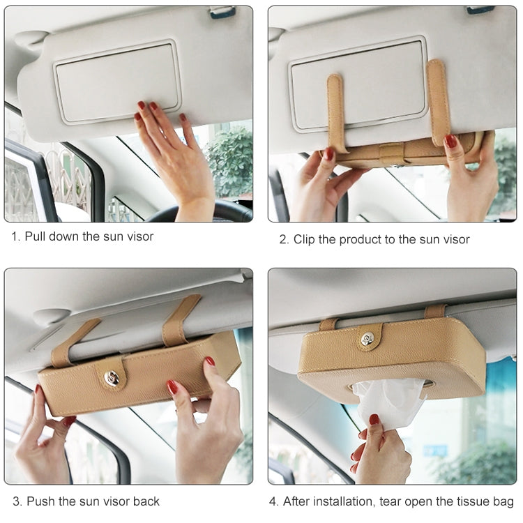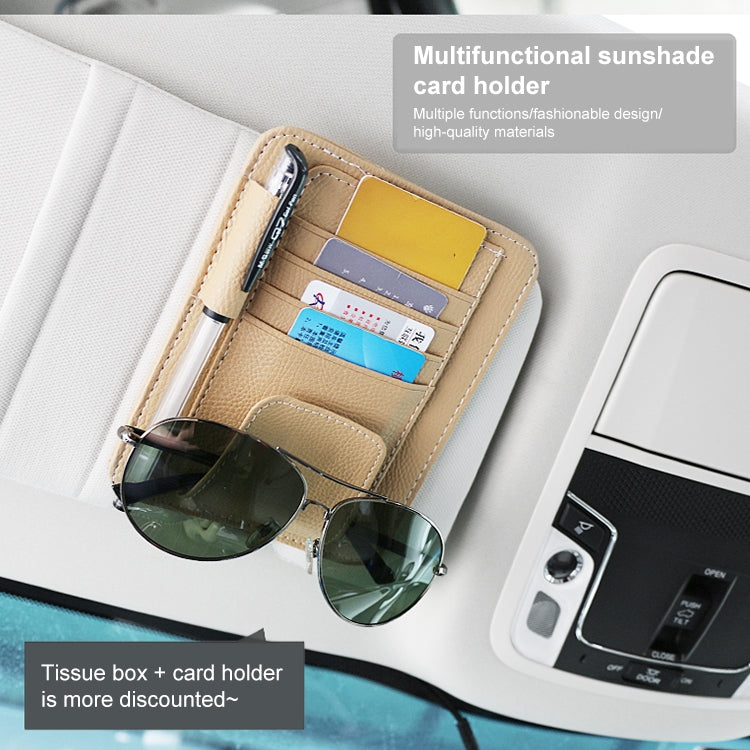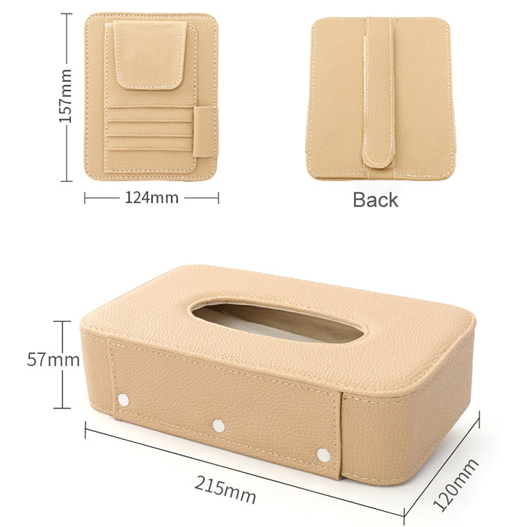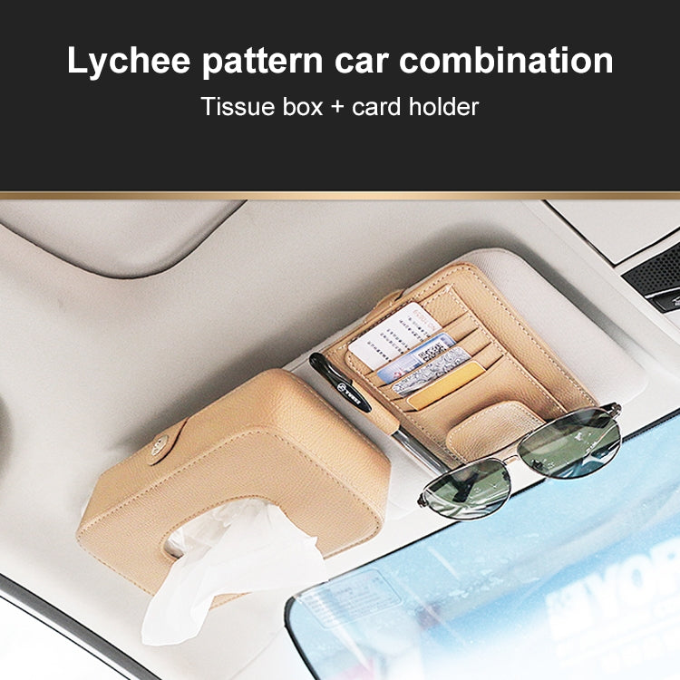 Car Litchi Texture Hanging Tissue Box Sun Visor Card Storage Clip(Beige)
