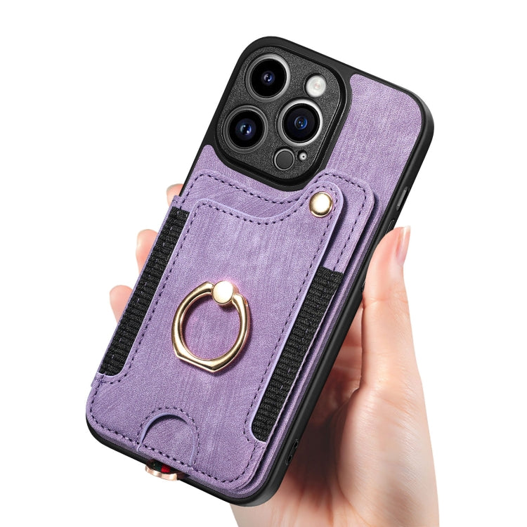 حافظة هاتف بمحفظة متعددة البطاقات لهاتف iPhone 13 Pro Max Retro ذات ملمس الجلد (أرجواني)
