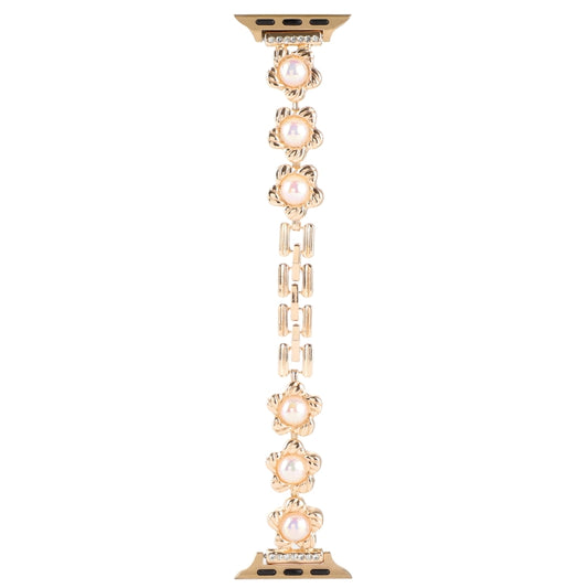 Flower Bracelet Metal Watch Band For Apple Watch Series 9&8&7 41mm / SE 3&SE 2&6&SE&5&4 40mm / 3&2&1 38mm(Gold)