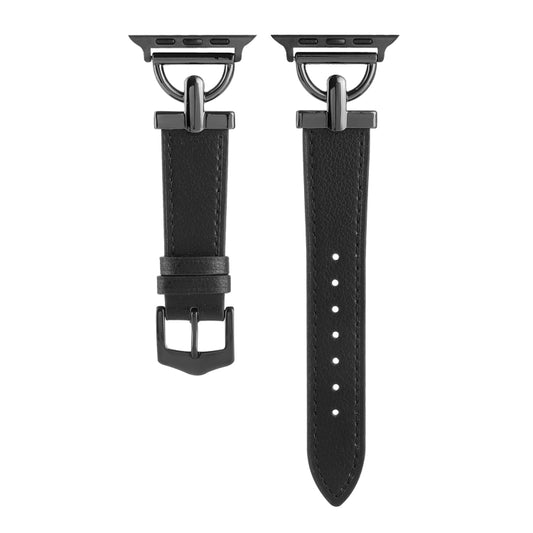 For Apple Watch Series 9&8&7 41mm / SE 3&SE 2&6&SE&5&4 40mm / 3&2&1 38mm D-Buckle Plain Genuine Leather Watch Band(Black)