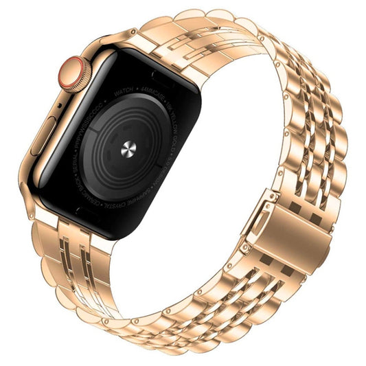 Seven-bead Ultra-thin Stainless Steel Watch Band For Apple Watch Series 9&8&7 41mm / SE 3&SE 2&6&SE&5&4 40mm / 3&2&1 38mm(Rose Gold)