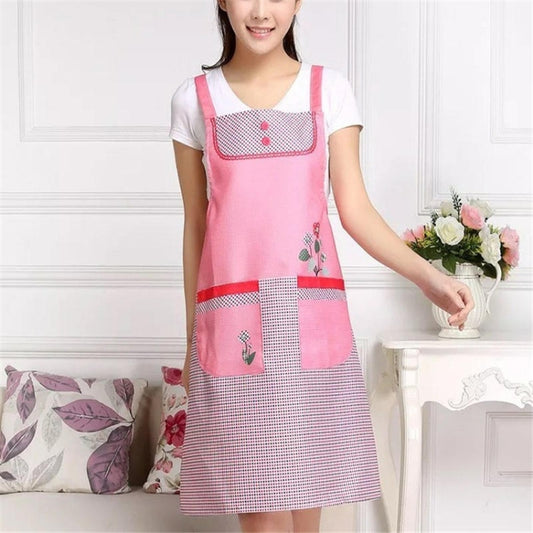 Home Adult Sleeveless Waterproof Grid Anti-oil Aprons with Double Pocket(Red)