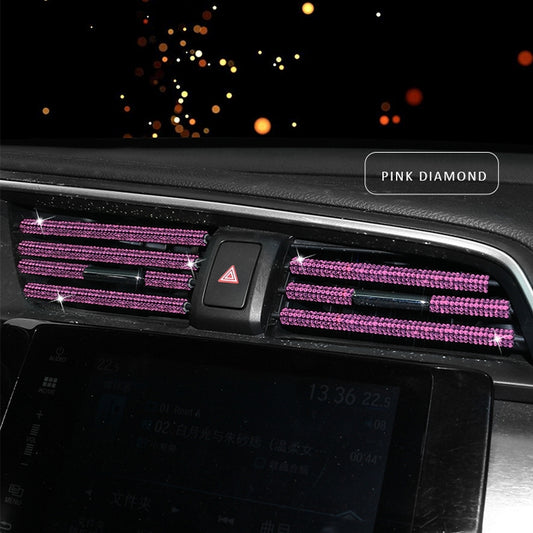5 PCS Car Outlet Diamond Decorative Strip Air Conditioning Port U-Shaped Clip Strip(Pink)