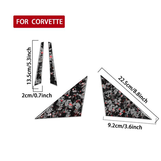 4pcs/Set Forged Gold Foil Carbon Fiber Car Outside A-pillar Decorative Sticker for Chevrolet Corvette C8 2020-, Left and Right Driver(Red)
