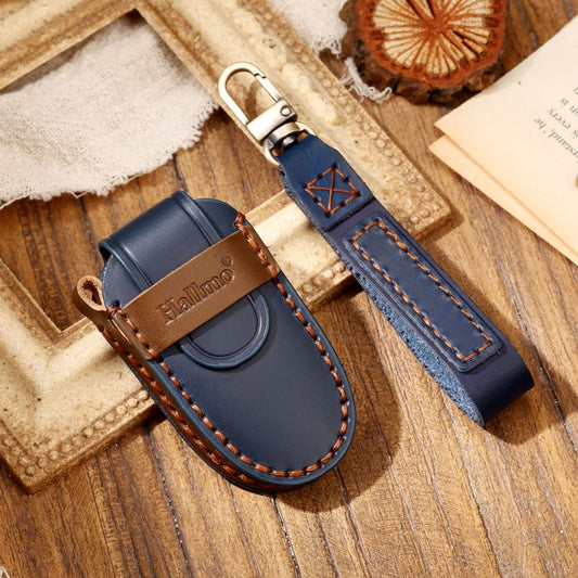 Hallmo Car Cowhide Leather Key Protective Cover Key Case for LEADING IDEAL One(Blue)