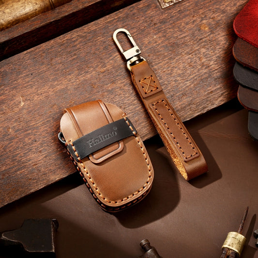 Hallmo Car Cowhide Leather Key Protective Cover Key Case for Volvo 6-button(Brown)