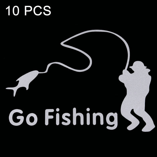 10 PCS Go Fishing Styling Reflective Car Sticker, Size: 14cm x 9.5cm(Silver)