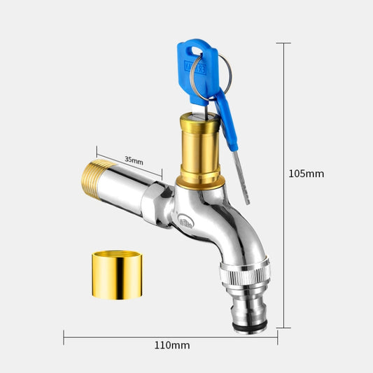 Household Faucet With Lock Outdoor Anti-theft 4 Minute Faucet, 规格: Key All Copper Long Washer Spout