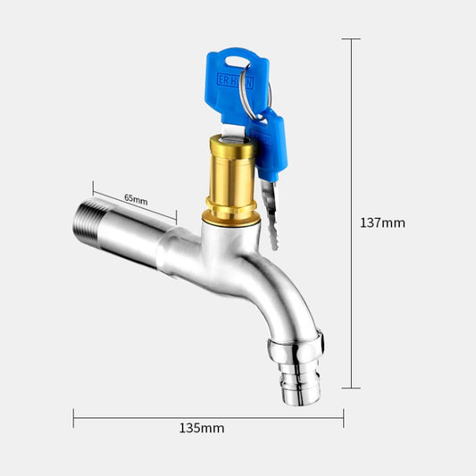 Household Faucet With Lock Outdoor Anti-theft 4 Minute Faucet, 规格: Key 304 Stainless Steel Long Sparkler