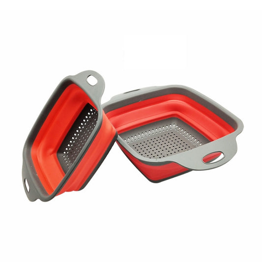 5 Sets Square Foldable Drain Basket Set Kitchen Silicone Fruit Vegetables Retractable Filter, Specification: Small + Large(Red)