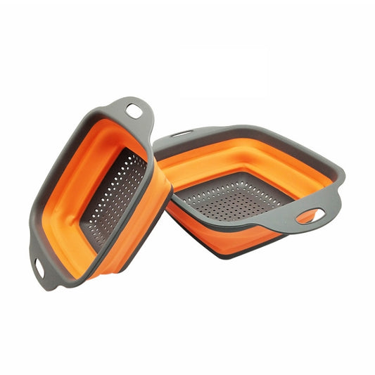 5 Sets Square Foldable Drain Basket Set Kitchen Silicone Fruit Vegetables Retractable Filter, Specification: Small + Large(Orange)