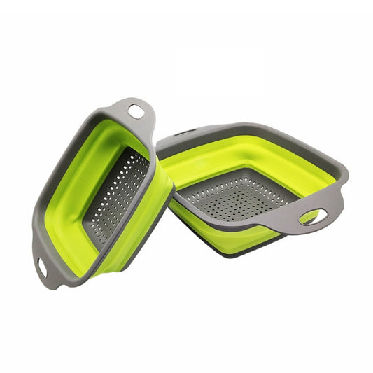 5 Sets Square Foldable Drain Basket Set Kitchen Silicone Fruit Vegetables Retractable Filter, Specification: Small + Large(Green)