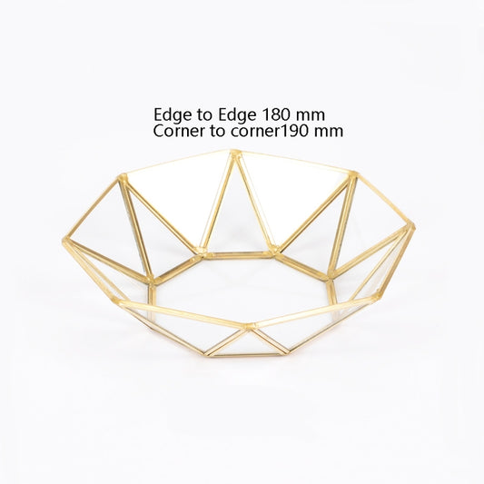 Glass Storage Tray Golden Retro Polygon Mirror Tray Brass Desktop Cosmetics Storage Tray Octagonal Plate