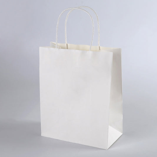 10 PCS Elegant Kraft Paper Bag With Handles for Wedding/Birthday Party/Jewelry/Clothes, Size:16x22x8cm (White)
