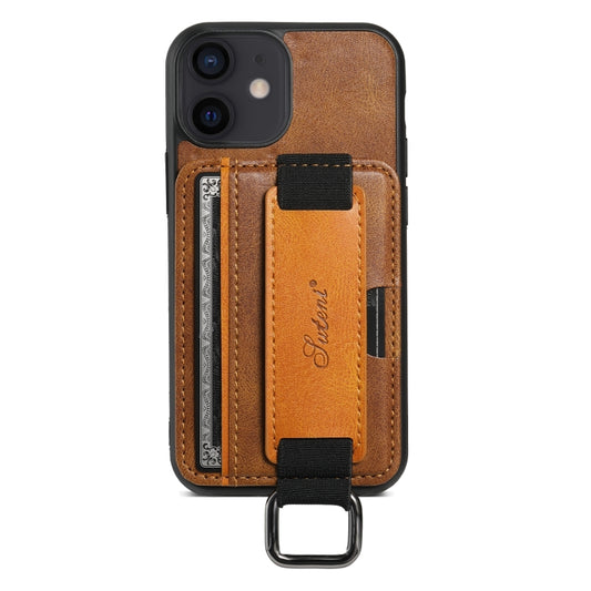 For iPhone 12 mini Suteni H13 Card Wallet Wrist Strap Holder PU Phone Case(Brown)
