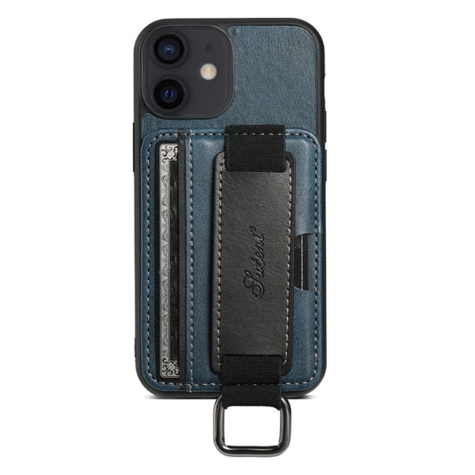 For iPhone 12 mini Suteni H13 Card Wallet Wrist Strap Holder PU Phone Case(Blue)