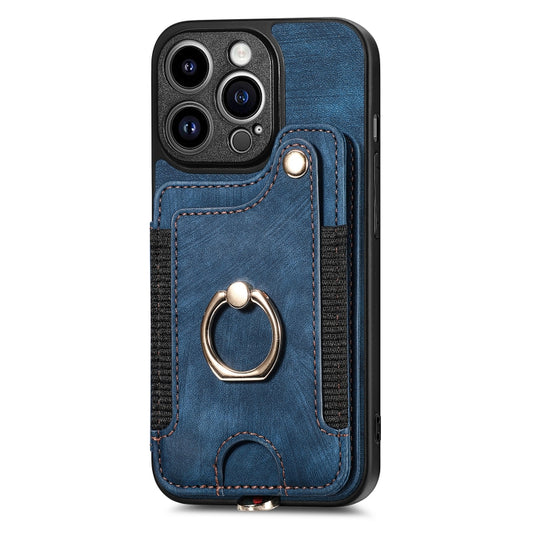 For iPhone 12 mini Retro Skin-feel Ring Multi-card Wallet Phone Case(Blue)