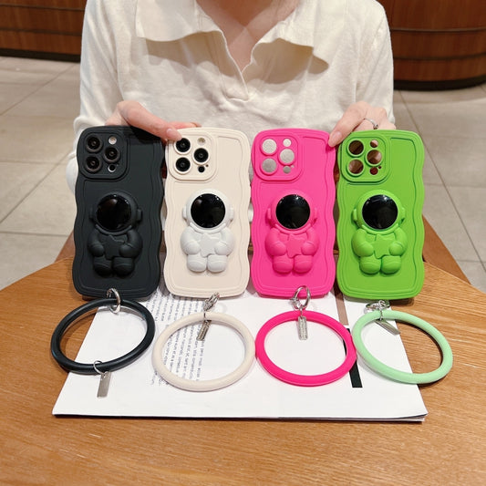 For iPhone 13 mini 3D Astronaut Holder Skin-feel Silicone Phone Case with Wristband(Black)