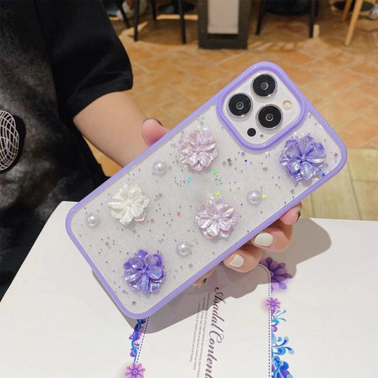 For iPhone 13 mini 3D Bow Flowers Glitter Epoxy TPU Phone Case(Purple)