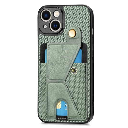 For iPhone 13 mini Carbon Fiber Wallet Flip Card K-shaped Holder Phone Case(Green)