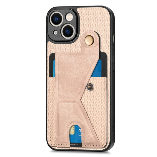For iPhone 13 mini Carbon Fiber Wallet Flip Card K-shaped Holder Phone Case(Khaki)