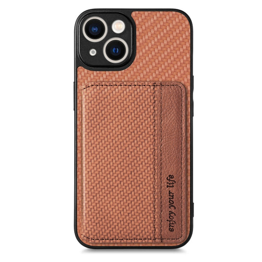 For iPhone 13 mini Carbon Fiber Magnetic Card Bag Phone Case(Brown)