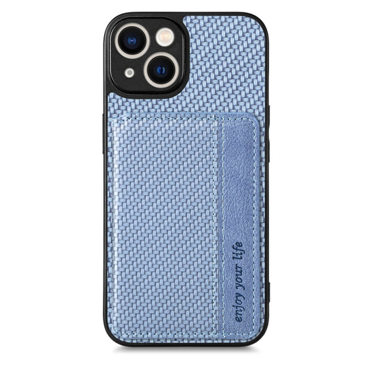 For iPhone 13 mini Carbon Fiber Magnetic Card Bag Phone Case(Blue)