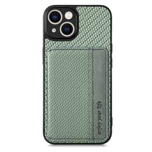 For iPhone 13 mini Carbon Fiber Magnetic Card Bag Phone Case(Green)