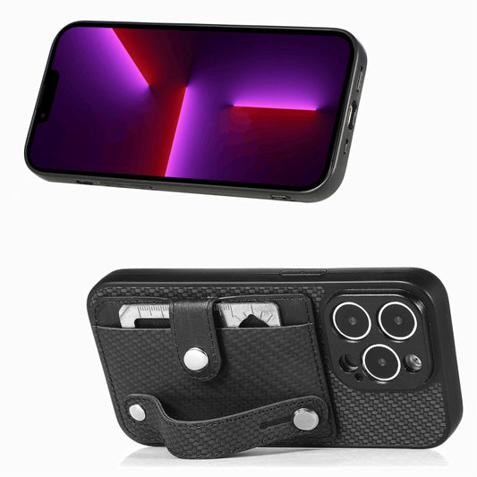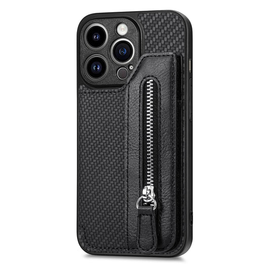 For iPhone 13 Pro Max Carbon Fiber Horizontal Flip Zipper Wallet Phone Case(Black)