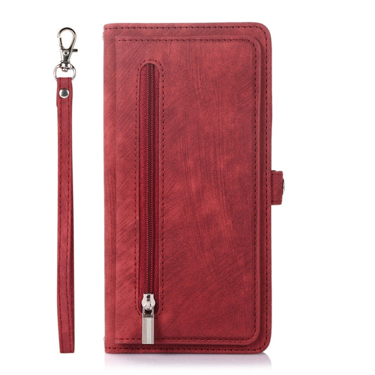 For iPhone 13 Pro Max Zipper Card Slot Buckle Wallet Leather Phone Case(Red)