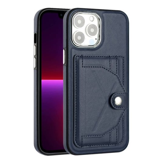 For iPhone 13 Pro Max Shockproof Leather Phone Case with Card Holder(Blue)