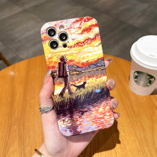 For iPhone 13 Pro Oil Painting Pattern Glossy PC Phone Case(Sunset)