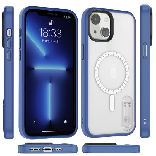 For iPhone 14 Plus Terminator MagSafe Magnetic Holder Phone Case(Transparent Cyan-blue)