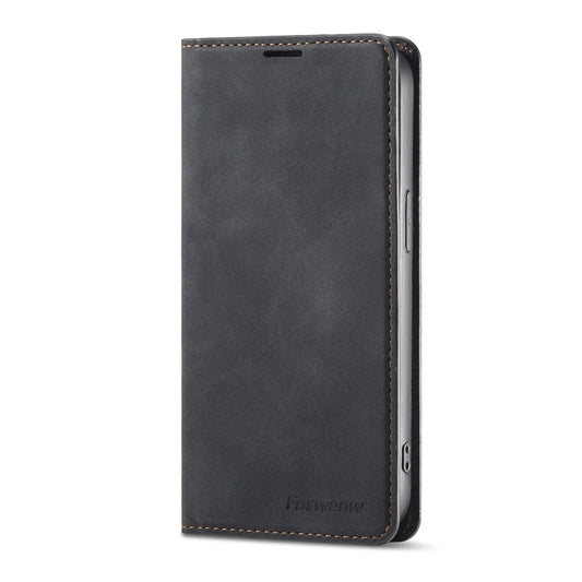 For iPhone 14 Plus Forwenw F1 Series Matte Strong Magnetism Leather Phone Case(Black)