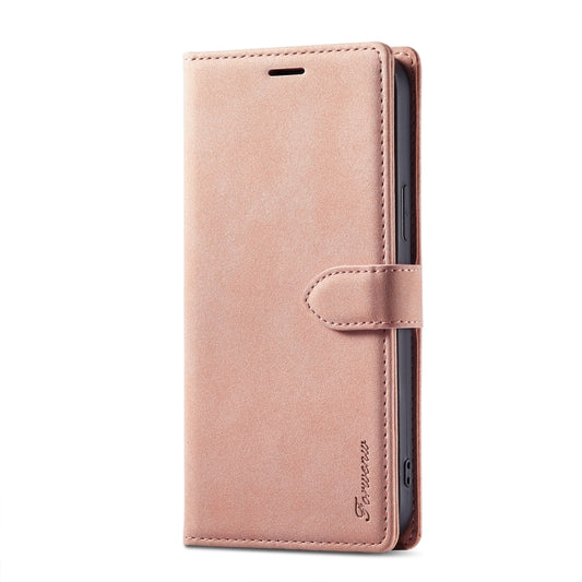 For iPhone 14 Plus Forwenw F1 Series Matte Strong Magnetism Leather Phone Case(Rose Gold)