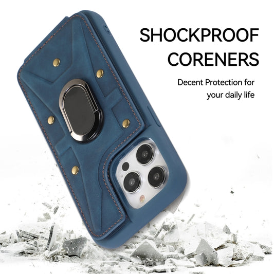 For iPhone 14 Pro Max Armor Ring Wallet Back Cover Phone Case(Blue)Regular price $18.00 USDRegular priceUnit price per-
