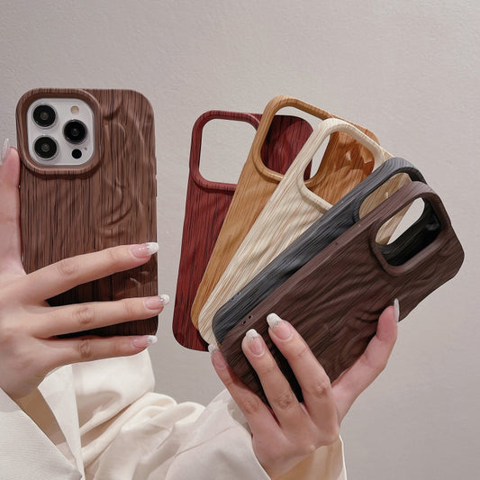 For iPhone 14 Pro Max Pleated Wood Grain TPU Phone Case(Dark Brown)