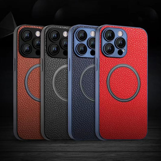 For iPhone 14 Pro Max Skin Feel Litchi Texture MagSafe Magnetic Phone Case(Blue)