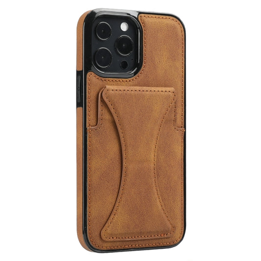 For iPhone 14 Pro Max Ultra-thin Shockproof Phone Protective Case with Holder(Brown)
